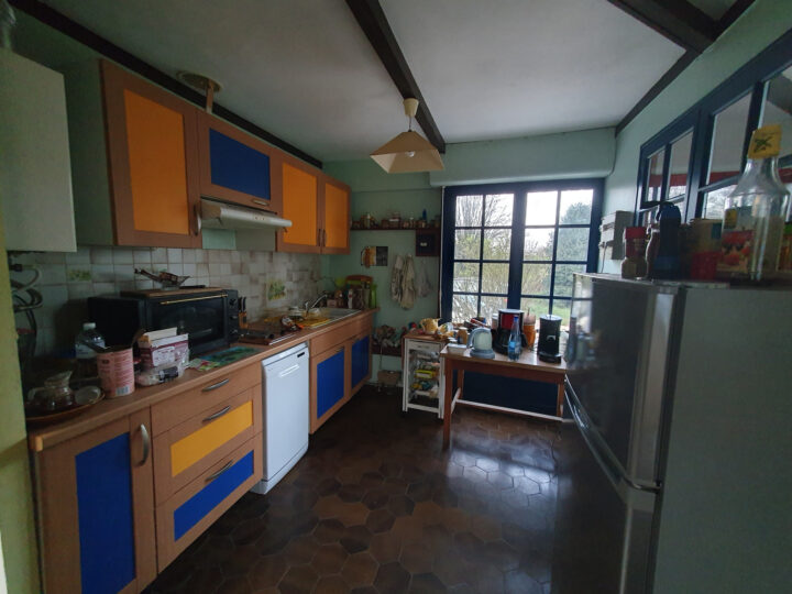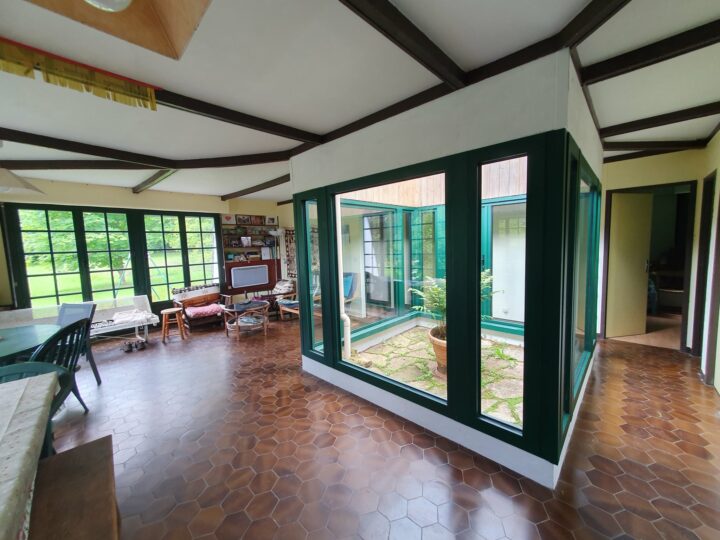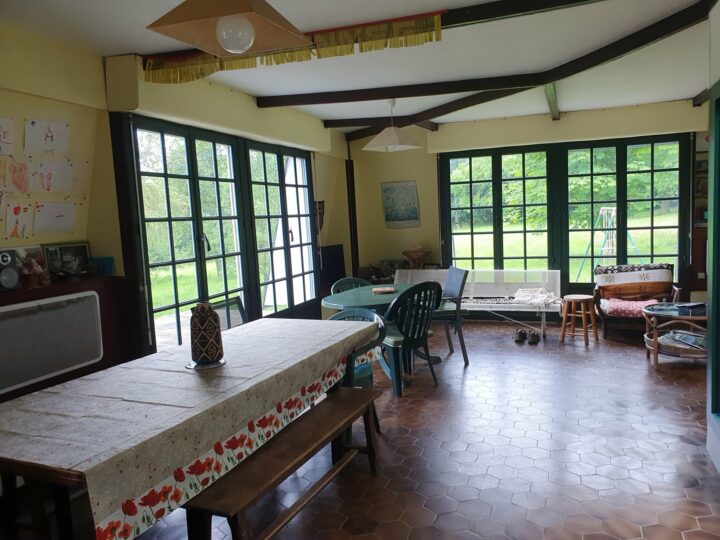 Découvrez cette perle rare d’architecture des années 1970, idéalement située entre Cormeilles et Pont-l’Évêque. Nichée au cœur d’un paysage vallonné, cette demeure vous promet tranquillité et intimité, loin des regards indiscrets. Conçue pour fusionner avec la lumière naturelle, elle se distingue par un patio central et de vastes baies vitrées qui inondent l’espace de vie d’une luminosité exceptionnelle. La cuisine, moderne et ouverte, s’harmonise parfaitement avec le salon, offrant une vue imprenable sur le jardin, accessible et appréciable tout au long de l’année, depuis l’intérieur comme l’extérieur. De plain-pied, cette habitation se compose de trois chambres confortables, une salle de bains élégante et un WC séparé, garantissant ainsi confort et praticité au quotidien. À l’extérieur, l’empreinte de l’architecte se ressent à travers chaque détail, notamment le toit plat, signature stylistique de l’époque. Le terrain, d’une superficie généreuse de 7 725 m2, est orné d’arbres fruitiers et comprend un abri de jardin, offrant un espace vert luxuriant et paisible, idéal pour se détendre ou pour cultiver votre jardin. Cette maison représente une opportunité exceptionnelle de posséder une œuvre architecturale, combinant design historique et confort moderne, dans un cadre bucolique et serein. Un véritable havre de paix qui attend son prochain propriétaire pour écrire un nouveau chapitre de son histoire.Prix : 252 000€ HAI dont 240 000€ hors honoraires d’agence et 6% d’honoraires d’agence à charge acquéreur. Montant estimé des dépenses annuelles d’énergie pour un usage standard entre 2 500€ et 3 410€. Les informations sur les risques auxquels ce bien est exposé sont disponibles sur le site Géorisques. www.georisques.gouv.fr
