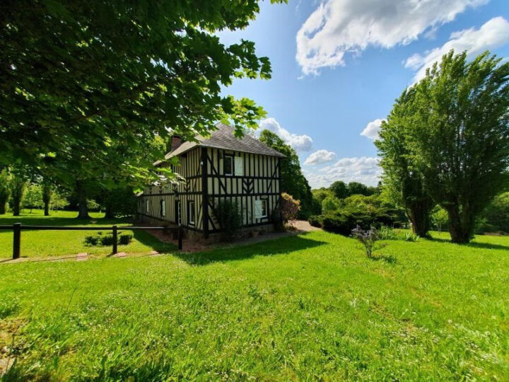 A moins de 2mn à proximité d’un joli village avec commerces et écoles maison normande édifiée sur un jardin d’1.2HA réparti en bois, verger et jardin d’agréement avec vue sur la vallée, completée d’une terrasse orientée plein sud. Le rdc baigné de lumière propose une cuisine équipée et aménagée ouverte sur le spacieux séjour-salle avec sa cheminée traversante, une grande chambre (16m2), une SDD et un wc. A L’étage, un palier dessert 3 chambres dont une avec sdd, une autre sdd, un wc, puis un grenier au dessus.~Une dépendance à usage d’atelier, abri à bois, portail électrique, parking.~~Nous aimons: ses volumes et hauteurs sous plafond, sa luminosité, sa chambre en rdc et SDD, ses rangements. Le magnifique cadre exterieur avec son verger, ses arbres centenaires vous séduiront!~~PRIX: 449 000€ HAI dont 430 000€ hors honoraires et 4,50% d’honoraires d’agence à charge acquéreur.~~Les informations sur les risques auxquels ce bien est exposé sont disponibles sur le site Géorisques.~www.georisques.gouv.fr~~Montant estimé des dépenses annuelles d’énergie pour un usage standard de 1500€